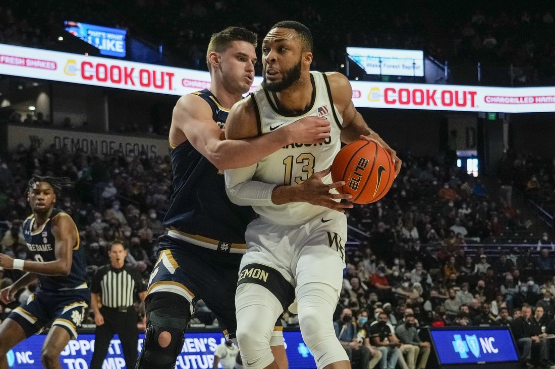 Notre Dame used a 17-4 run in the first half to build a 41-29 lead. The Demon Deacons responded by scoring the last five points before the half as the Irish went 3:17 without scoring.