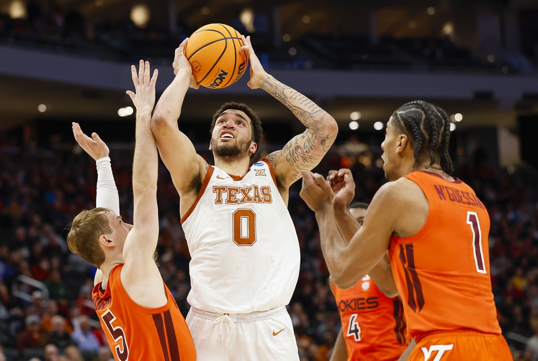 Texas (22-11) used a momentum changing 3-pointer from beyond half-court by Marcus Carr at the first-half buzzer to set the table for a dominating second half. The Longhorns had a 34-32 lead at halftime and never let Virginia Tech see the front again, using a 15-3 run over the middle of the second half to turn a 46-42 advantage to 16 points after two free throws by Courtney Ramey with 8:26 to play.