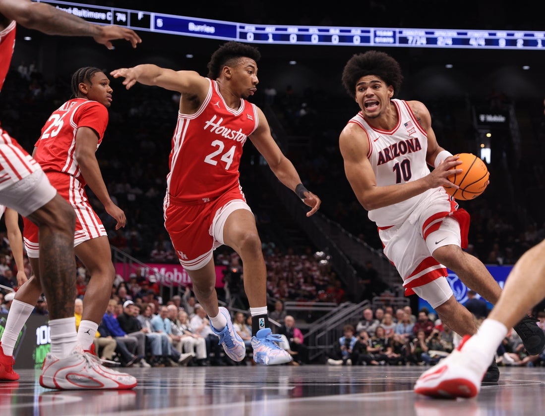 “We’ve been playing with each other for a while,” Arizona senior guard Bradley said at the postgame press conference. “We know each other and want the ball and need the ball. But playing against Houston, it’s never easy. So you know you’ve got to move it, you gotta find each other and create plays for each other. Brayden was hitting shots, and Koa was getting to the rim and Ivan was getting to the rim. All our guys contributed tonight.”