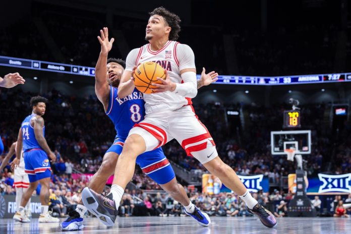 KANSAS CITY, Mo. — Henri Veesaar and KJ Lewis each scored 19 points off the bench to lead Arizona to an 88-77 victory over Kansas in the quarterfinals of the Big 12 tournament on Thursday.