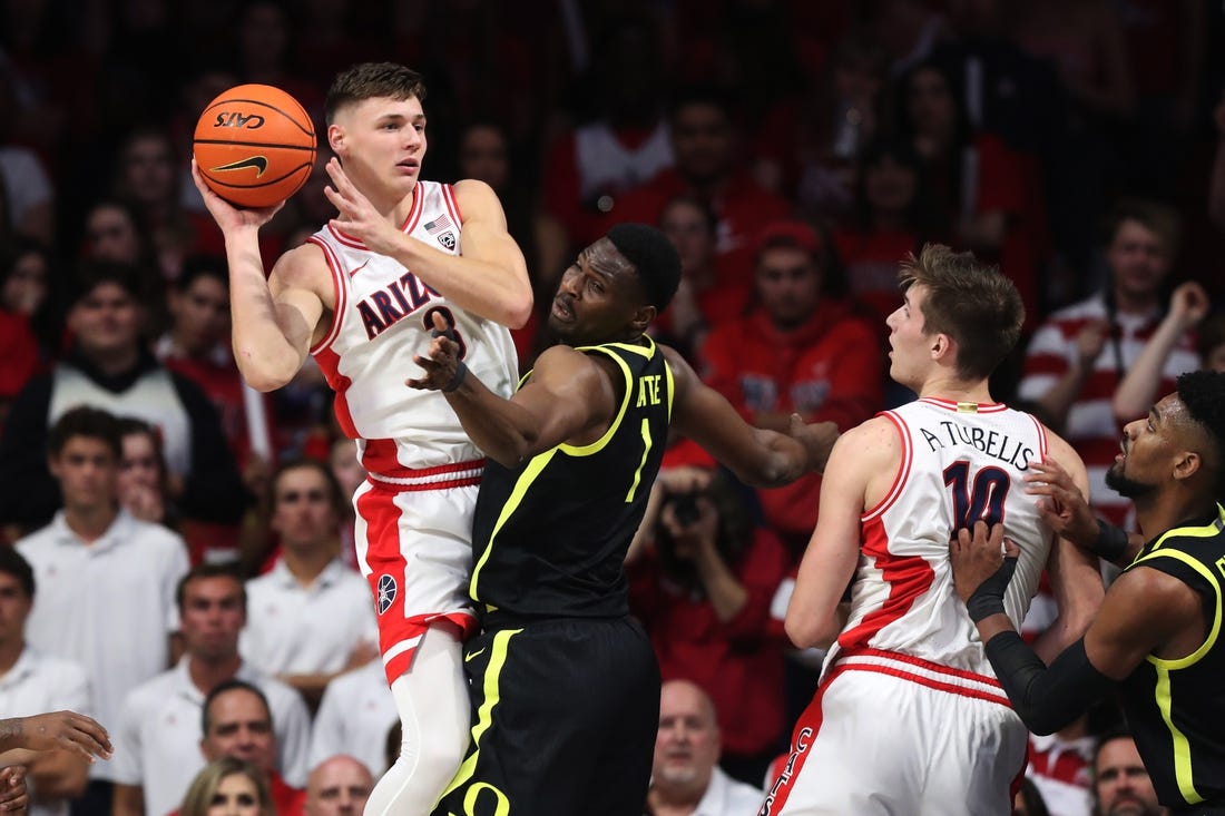 NCAAB: Azuolas Tubelis (40 points) carries No. 5 Arizona past Oregon
