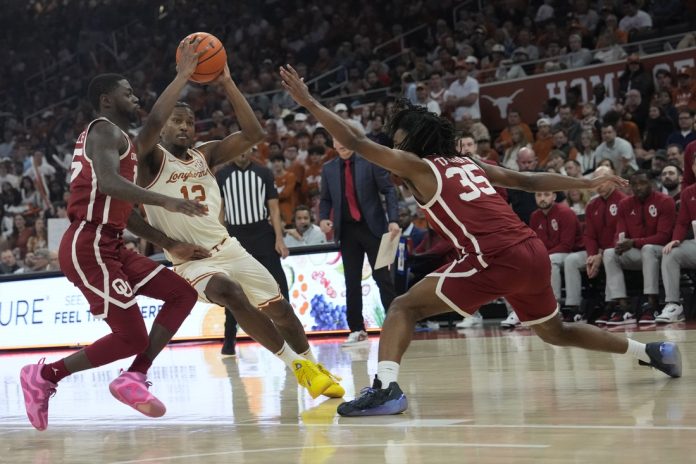 Jordan Pope’s layup with 1:11 to play cut Texas’ deficit to four points but Oklahoma held on, getting two free throws from Fears with 16.6 seconds left. Pope’s 3-pointer with 6.2 seconds remaining was only window dressing as the Sooners snapped an eight-game losing streak to Texas.