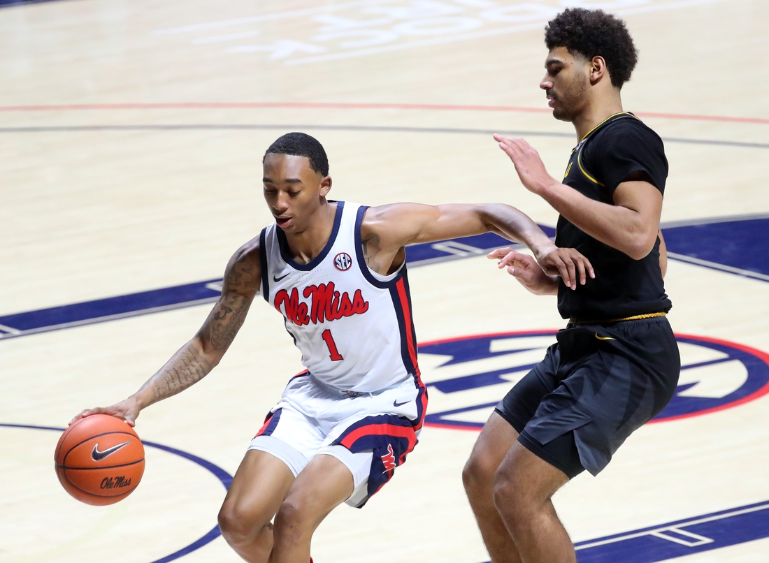 The Rebels continued to pour it on in the second half, going up 65-43 with 11:53 to play on a layup on a runout steal by Daeshun Ruffin, the Rebels’ highly regarded freshman point guard.