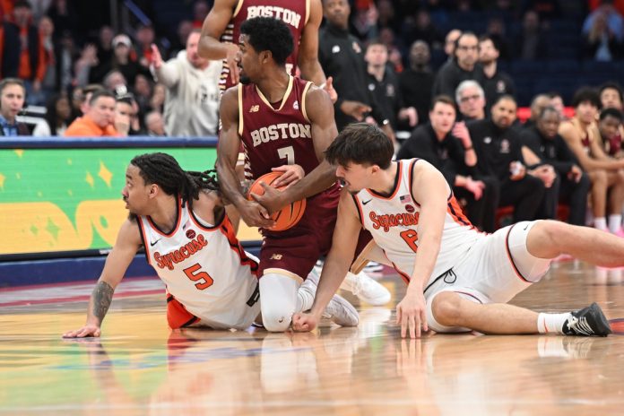 Boston College’s Chad Venning, a grad student from St. Bonaventure, is coming off one of his most complete games with impacts at both ends of the floor. He poured in 21 points and had his third outing with four blocked shots against Notre Dame.
