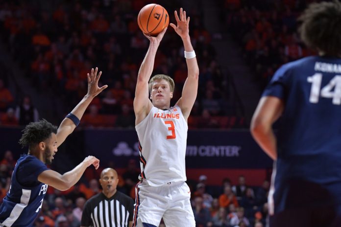 The Fighting Illini prevailed despite the absence of leading scorer Kasparas Jakucionis. The freshman point guard, named to the Wooden Award Midseason Top 25 Watch list Tuesday, sat out due to an injured left forearm.