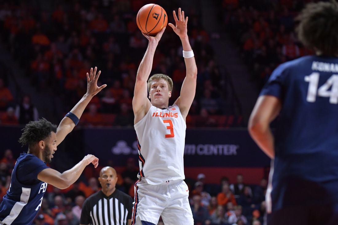 Humrichous cashed 3-pointers on back-to-back possessions — his third and fourth of the half — to give Illinois a 26-13 lead with 7:11 to go before the break.