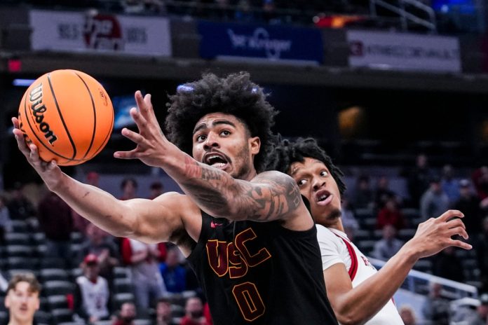 Desmond Claude scored 22 of his game-high 28 points after halftime, helping No. 14 seed Southern California recover after coughing up a 15-point lead to oust No. 11 seed Rutgers from the Big Ten tournament’s opening round 97-89 in double overtime on Wednesday in Indianapolis.