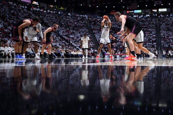 San Diego State held a 10-point lead early in the second half after an 11-0 burst with LeDee scoring three straight baskets along the way. Parrish’s layup capped the run and gave the Aztecs a 52-42 lead with 14:07 to play.