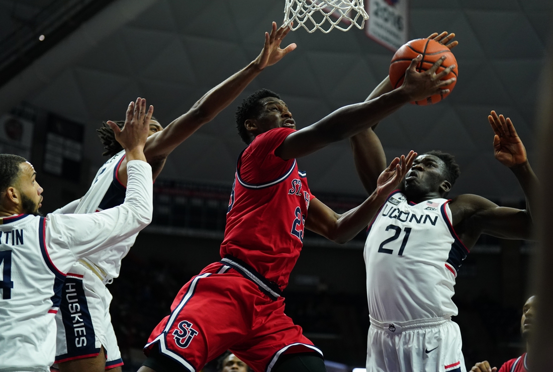 Adama Sanogo continues to lead the Huskies. Sanogo scored 26 points and pulled down 18 rebounds against St John’s following an 18-point, 16-rebound performance in a 90-87 overtime loss at Seton Hall on Jan. 8.