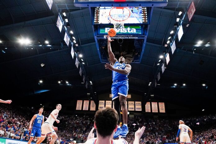 In doing so, BYU (20-8, 8-7 Big 12) snapped the Jayhawks’ 19-game home winning streak. Other streaks also fell for Kansas, including an 82-game winning streak at home when leading at halftime and a 67-home game winning streak against unranked opponents.