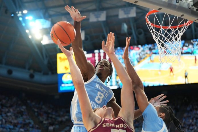 The Tar Heels built a 37-25 lead late in the first half before the Seminoles struck for three 3-pointers in slightly more than two minutes. North Carolina led 40-34 at the break.