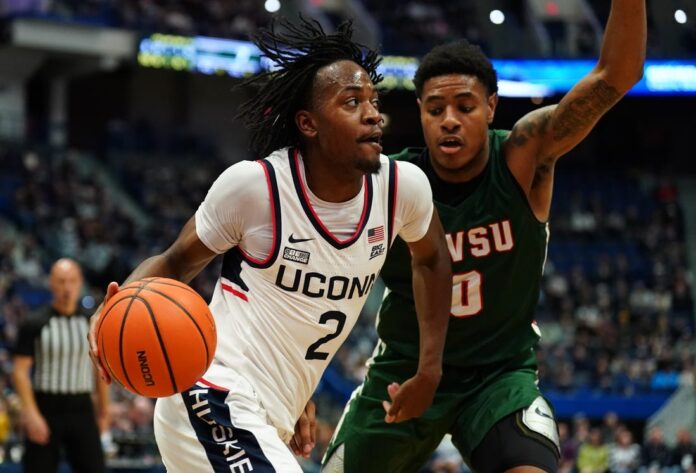 UConn freshman Stephon Castle didn’t play in the game because of a knee injury he sustained during Saturday’s 107-67 victory over Stonehill. Castle was named the Big East Freshman of the Week on Monday after he averaged 14.5 points, 6.5 rebounds and 3.5 assists in UConn’s first two games.