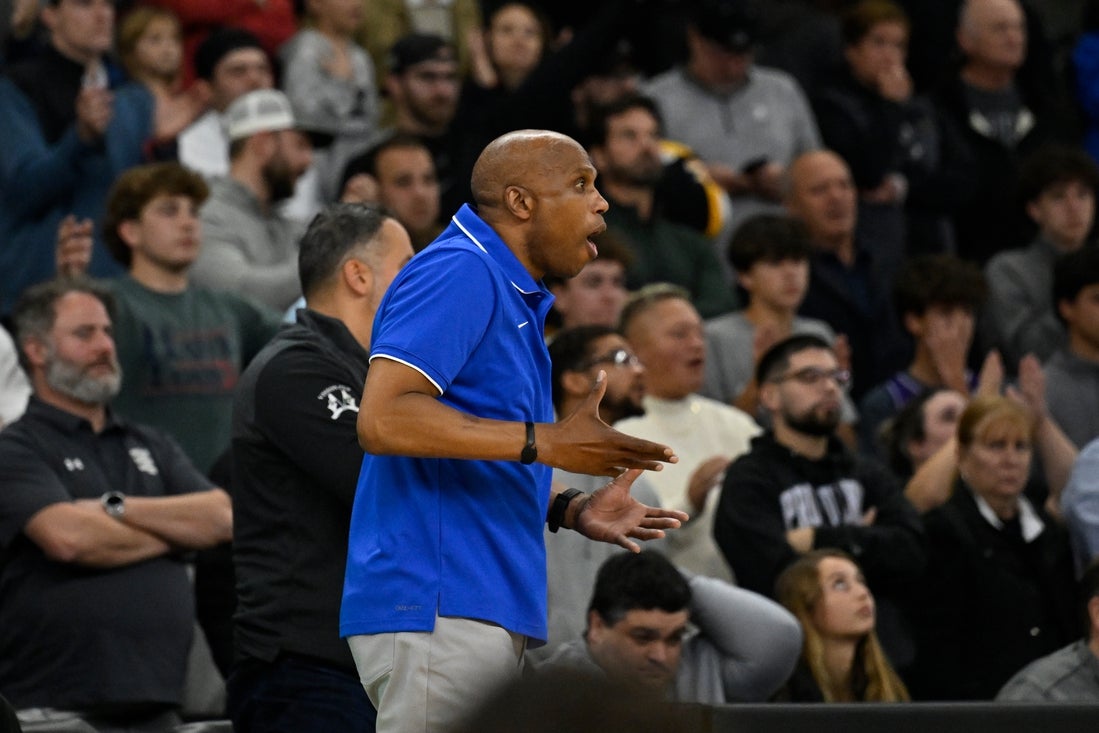 Max Frazier powered Central Connecticut State inside with 14 points and a game-high 13 rebounds. Against the taller Scarlet Knights, the Blue Devils won the battle of the boards 41-37.