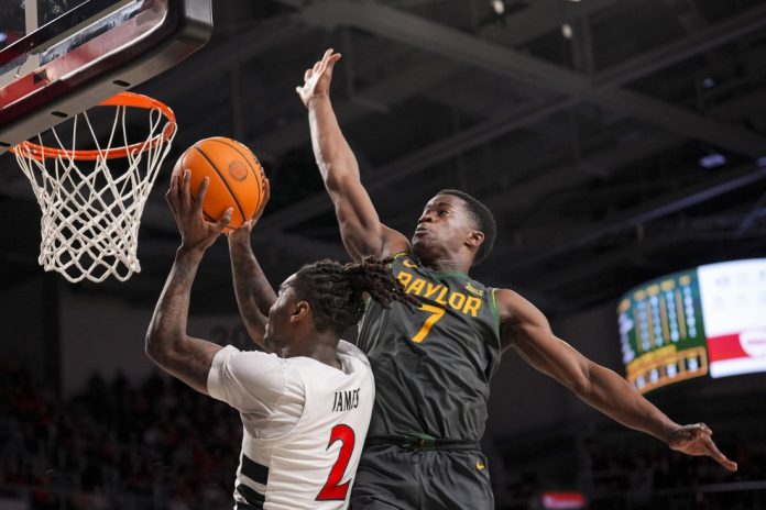 The Bearcats stoked the margin to 35-24 after back-to-back 3-pointers by James and Simas Lukosius while they held Baylor without a field goal (and just two free throws) for nearly eight minutes.