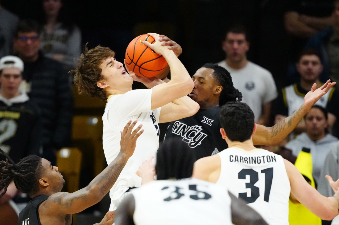 The Bearcats (11-5, 1-4 Big 12) led by seven points at halftime and by 12 five and a half minutes into the second half. Colorado rallied, taking its first and only lead of the game at 51-50 on a layup by Trevor Baskin. Lukosius then hit two 3-pointers around a dunk by Dillon Mitchell, with the second deep jumper with 1:46 to play giving Colorado a 60-53 lead.
