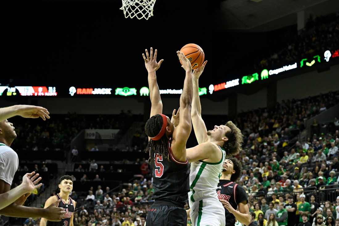 Oregon led by as many as nine points, 28-19, in the first half after Kwame Evans Jr. knocked down a 3-pointer with 6:24 to play. Then Indiana went on a 13-2 run to take a two-point lead.