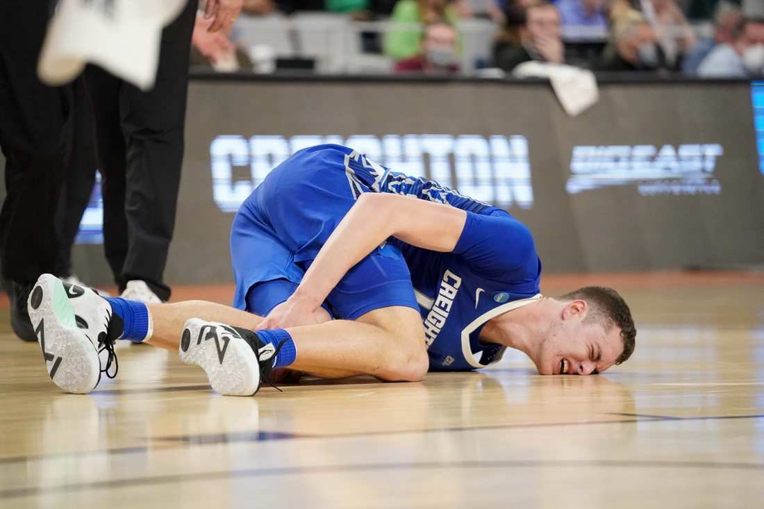 Kalkbrenner injured his left knee during overtime of a 72-69 victory over eighth-seeded San Diego State in a first-round game. He fell to the floor on the left leg and tried to get up, only to take a couple steps and fall again while displaying intense pain.