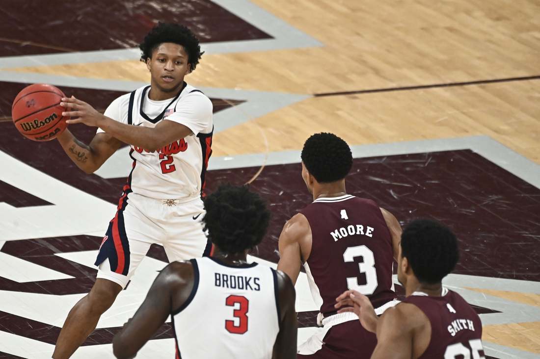 A McDonald’s All-American recruit — Ole Miss’ first — Ruffin drove the lane to produce his own layups and often dished to Matthew Murrell (20 points, 8-of-12 shooting) and Nysier Brooks (11 points, 5 of 6) in the sizzling 20 minutes.