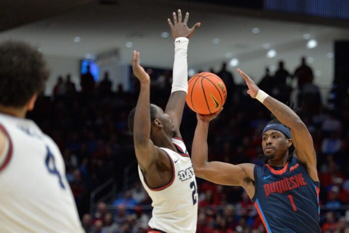 Dayton led 53-50 with 9:40 left, but Dixon’s layup and Fousseyni Drame’s triple gave the Dukes a 55-53 lead with 7:56 left. After a timeout, Clark’s layup gave Duquesne a four-point lead — its largest of the second half.