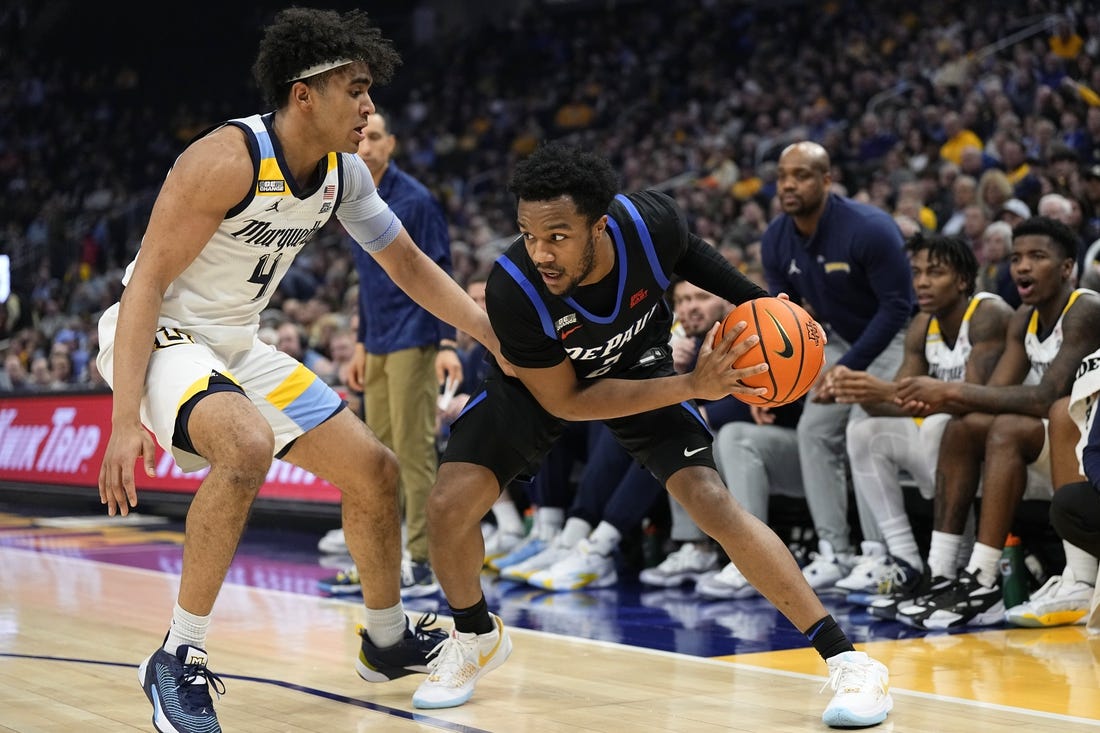 Chico Carter Jr., who put up 23 points, six assists and five rebounds Tuesday against St. John’s, leads the Blue Demons with 11.0 points and 3.8 assists per game.