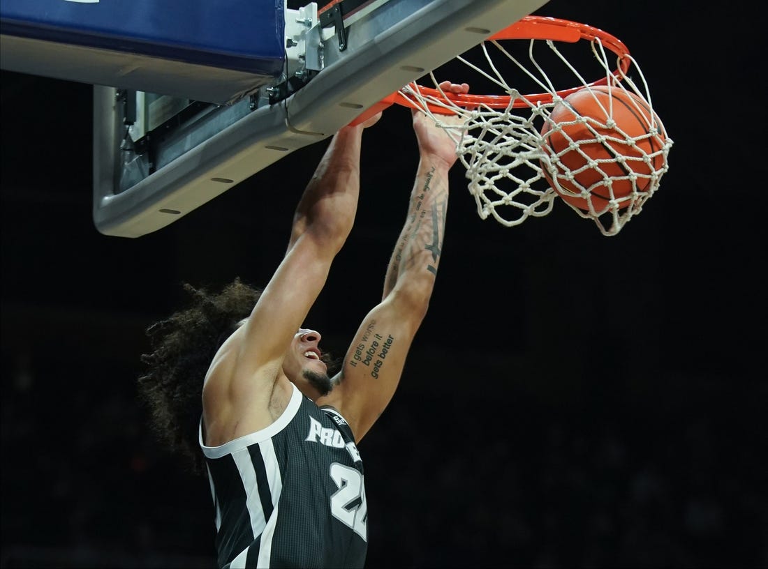 Carter got off to a blazing start, scoring 10 of Providence’s first 14 points. His efforts kickstarted a colossal 25-3 run that gave the Friars a commanding 20-point lead, and he also capped the surge with a statement dunk with 7:15 left in the first half.