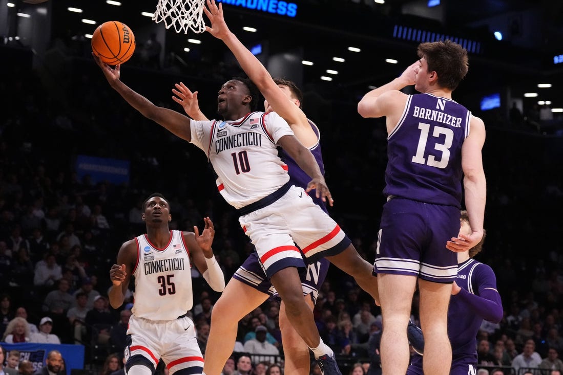 NEW YORK — Donovan Clingan finished two blocks shy of a triple-double Sunday night as defending national champion and top-seeded UConn posted another wire-to-wire win by beating ninth-seeded Northwestern 75-58 in an East Regional second-round game at Barclays Center.