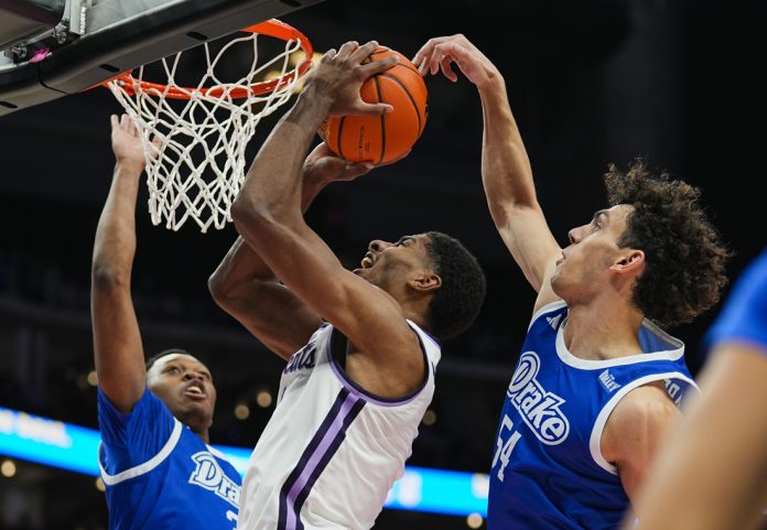 With 1:34 left in regulation, N’Guessan hit two freebies for Kansas State to regain the lead at 63-61. McDaniel’s 3-pointer was off target and Drake had a chance to tie or take the lead in the final minute. Abreu hit two free throws with 23.9 seconds left to tie the game. Hausen’s 3-pointer at the buzzer fell short.