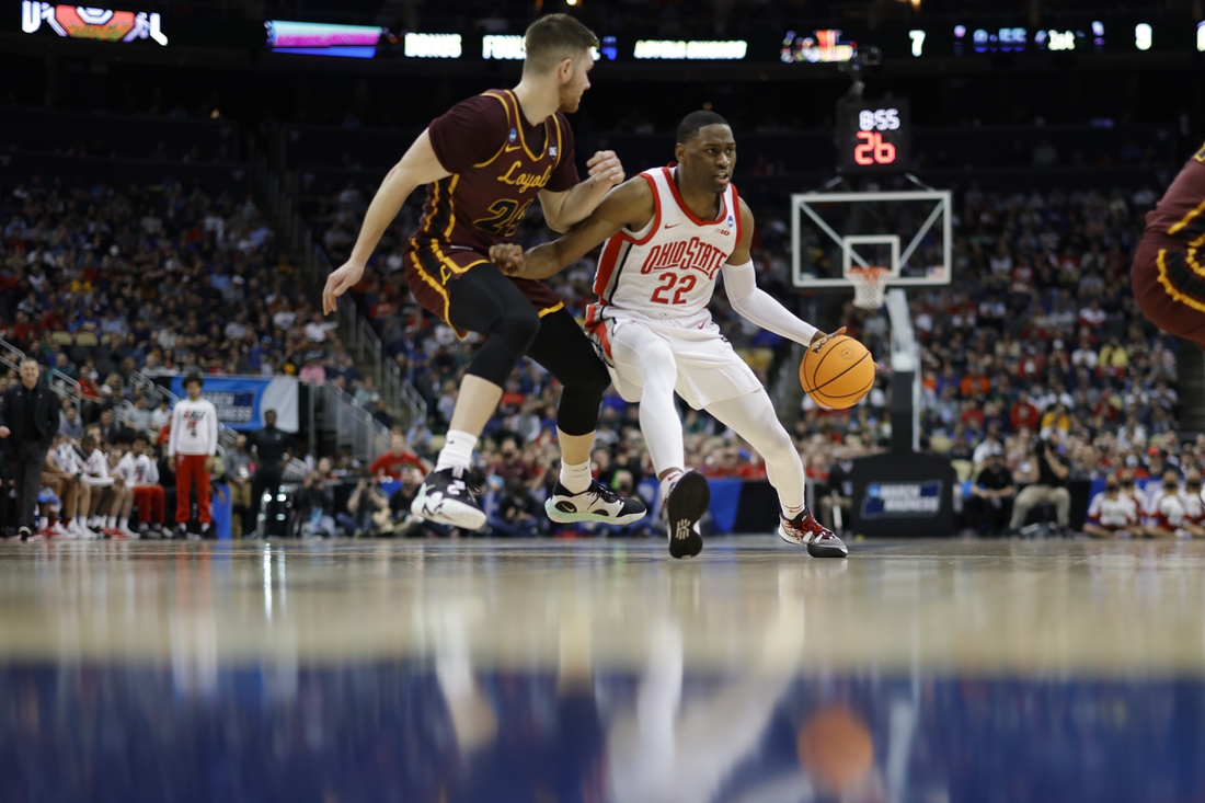 Ohio State led 23-18 at the half but quickly extended the margin 36-23 when Meechie Johnson Jr. made the Buckeyes’ first 3-pointer of the game in 11 tries with 13:41 remaining.