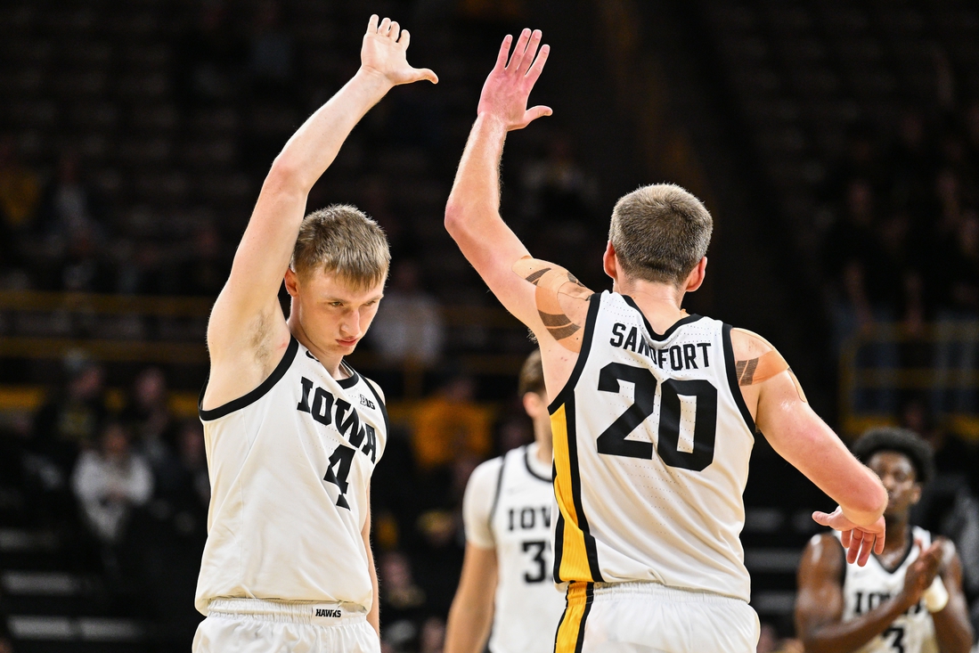 Pryce Sandfort came off the bench to hit 6 of 8 from long distance and score a game-high 22 points. Older brother Payton Sandfort added 17 points, stuffing the stat sheet with eight rebounds and seven assists (though he committed six turnovers). He leads five Hawkeyes in double figures so far at 18.5 points per game.