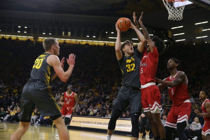 Owen Freeman, a 6-foot-10 freshman who has started the past five games, had 14 points and a season-high 13 rebounds for the Hawkeyes.