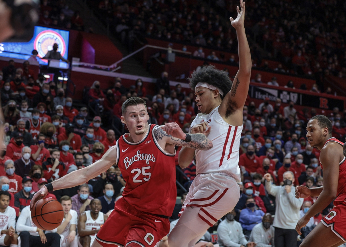 Ahrens sank a 3 and Branham got a layup to fall to put Ohio State ahead 19-16, but for the next 4:23 the Buckeyes were held scoreless during another 7-0 Rutgers spurt. After both teams climbed through the 20s and traded the lead back and forth, Aundre Hyatt’s mid-range jumper in the last second handed Rutgers the 32-31 halftime advantage.