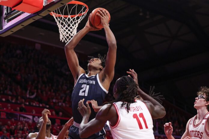 The Hoyas fell behind by 13 in the first half before rallying to within two at 31-29. Rutgers led by six at intermission and pulled away in the second half, building an 18-point lead before settling for the 11-point win.