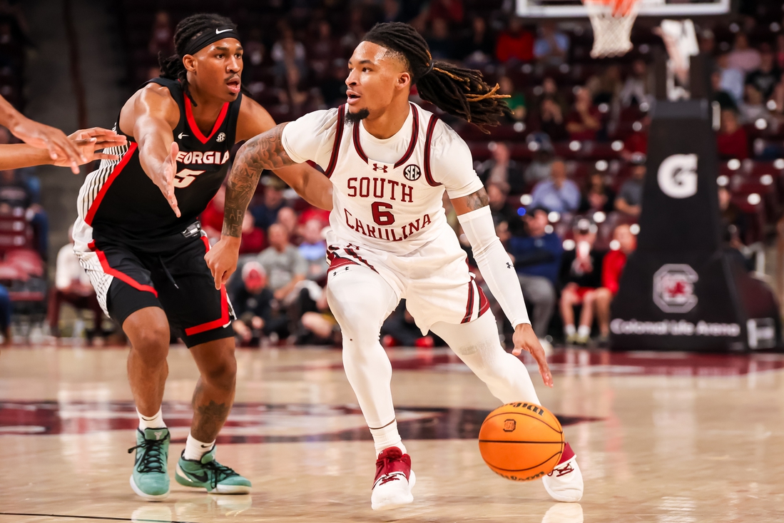 Georgia took control early and held a 38-24 lead on a two-handed dunk by Somto Cyril with 3:28 left. After the Bulldogs held a 40-29 lead by intermission, Jamarii Thomas hit two 3s in the opening 4:52 to move the Gamecocks within 42-38. They trailed 44-41 following a layup by Murray-Boyles with 13 minutes left.