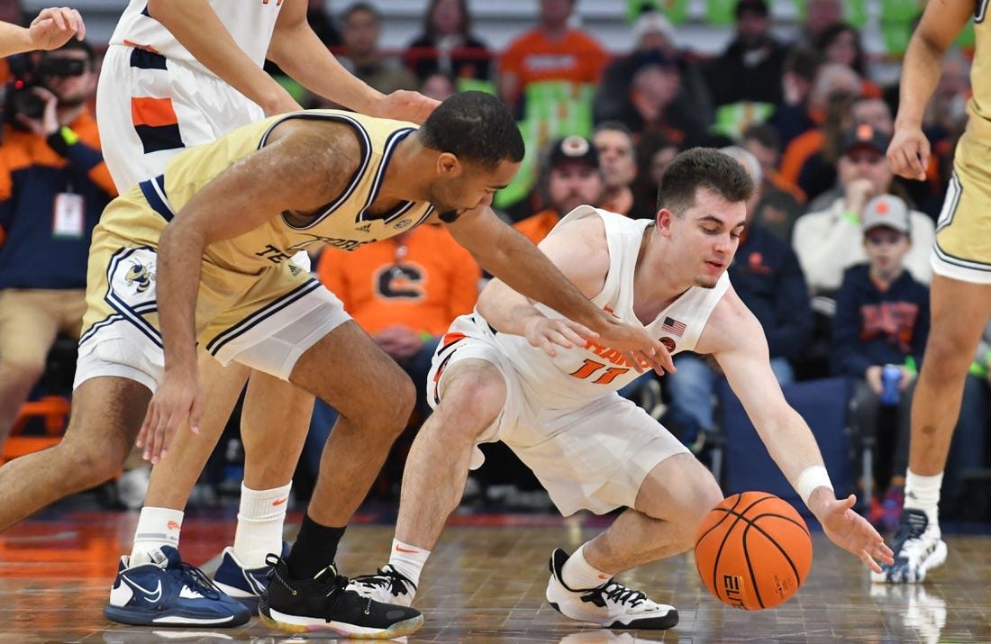 Judah Mintz scored 23 points and Jesse Edwards collected 18 points, eight boards and four blocks as the Orange (16-14, 9-10) lost their fourth straight contest.