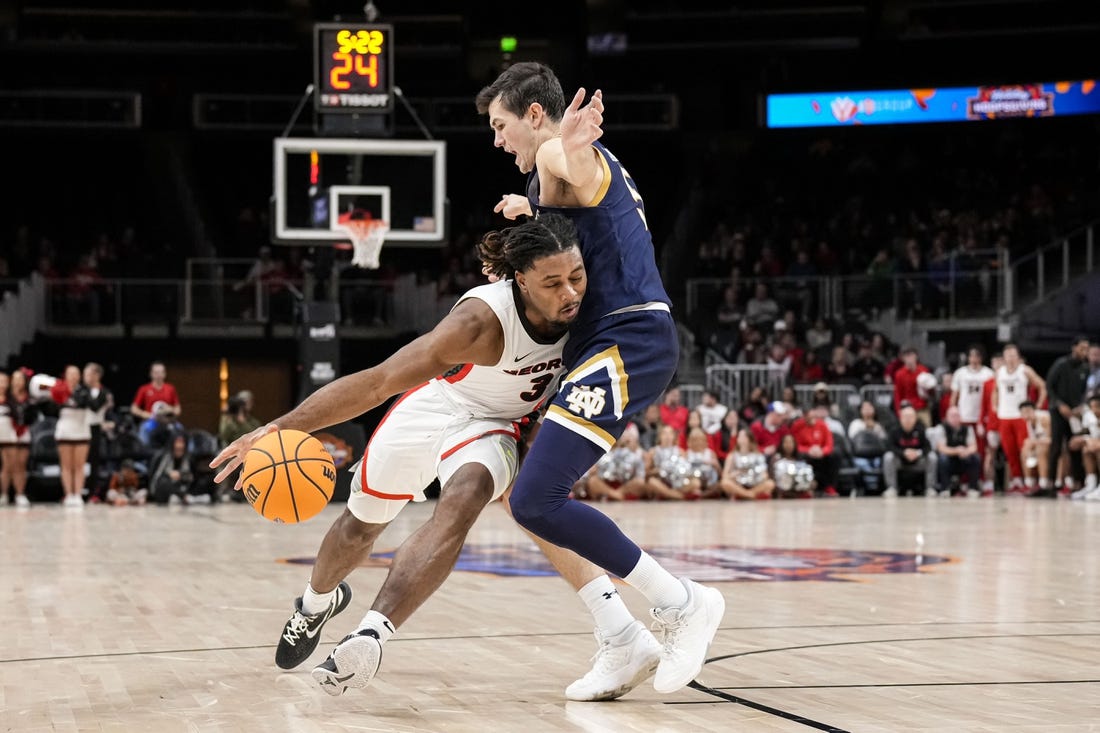 Braelen Bridges and Matthew-Alexander Moncrieffe were both perfect from the field while combining for 33 points to lead Georgia to a 77-62 victory over Notre Dame at the Holiday Hoopsgiving event on Sunday at Atlanta.