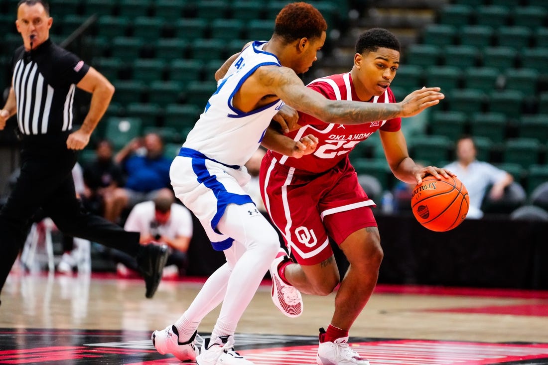 After making all three of his 3-pointers and scoring a season-high 17 in Thursday’s win over Nebraska, Groves was held scoreless until his 3-pointer with about 12 minutes remaining put the Sooners in front 52-51. He picked up his fourth foul with more than 11 minutes left, sending him to the bench until less than six minutes remained.