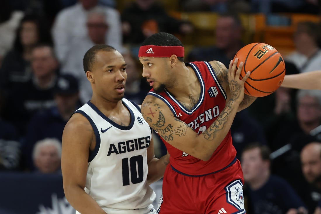 Utah State shot 55 percent (33 of 60) from the field. Fresno State shot 41.4 percent (24 of 58).