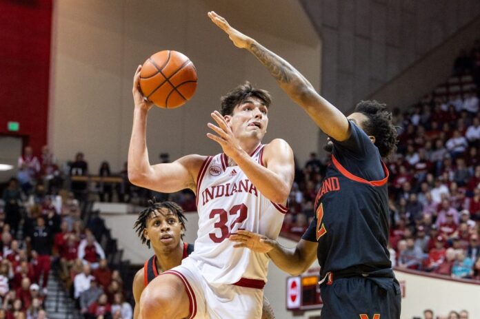 Mackenzie Mgbako delivered 13 points and seven rebounds and Malik Reneau added 11 points and five rebounds as the frontcourt starters for Indiana (6-1, 1-0) combined for 42 points and led the Hoosiers to a 46-30 edge on the boards.