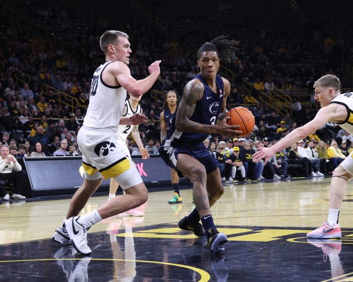 The Hawkeyes led 76-68 with under three minutes remaining when Konan Niederhauser dunked following a spin move down low. The Swiss big man made a short jumper with about 1 1/2 minutes left to get the Nittany Lions within 76-73 and then drained two free throws to get his team within 76-75 with 53 seconds to play.