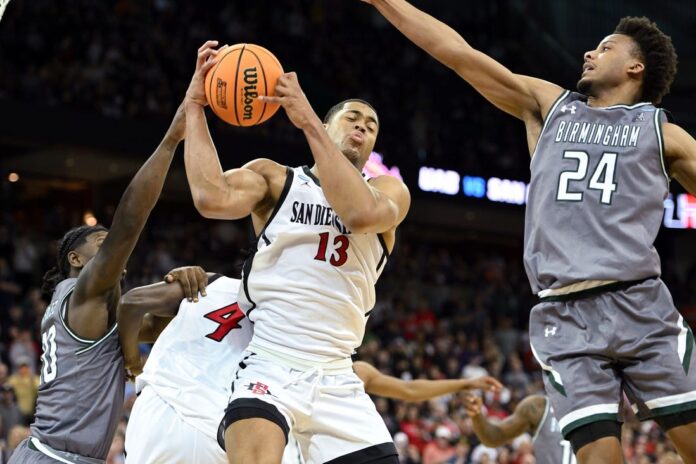 Lamont Butler added 15 points and four steals for the fifth-seeded Aztecs (25-10), who are looking for another deep run after losing to UConn in last season’s NCAA title game.