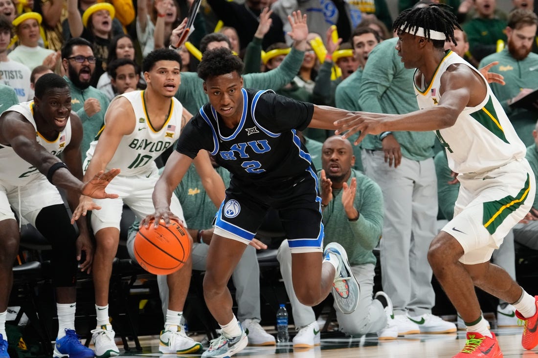 Baylor started slow on offense, missing 14 of its first 18 field-goal attempts. The Bears’ shooting struggles opened the door for BYU to take an early lead. Jaxson Robinson bookended four consecutive baskets that put the Cougars up 22-16.