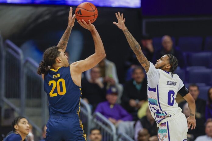 The Golden Bears’ Jaylon Tyson, who shot 11 of 20 from the floor and scored a game-high 28 points, drew a double-team to free up Celestine for an open 3-pointer from the wing that gave Cal the win.