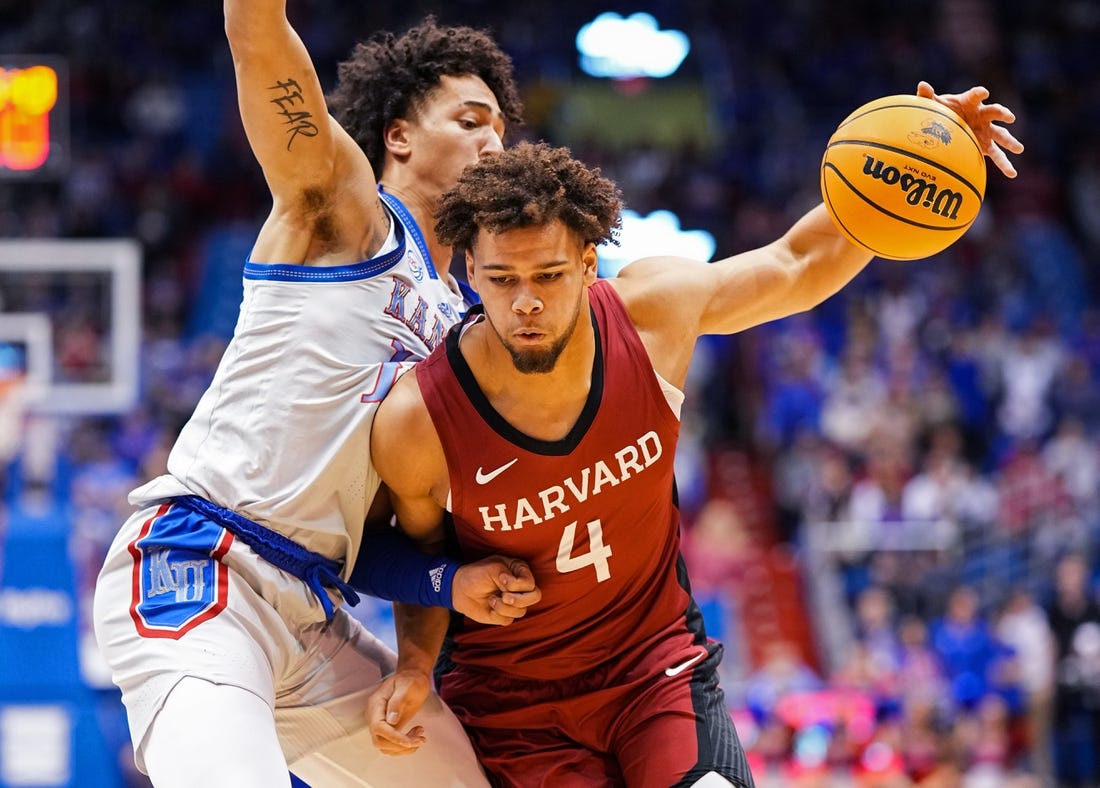 Kansas led 34-23 on a basket by Adams early in the second half, but Harvard battled back to pull within 40-36 on a basket by Chisom Okpara with 12:32 left in the contest.