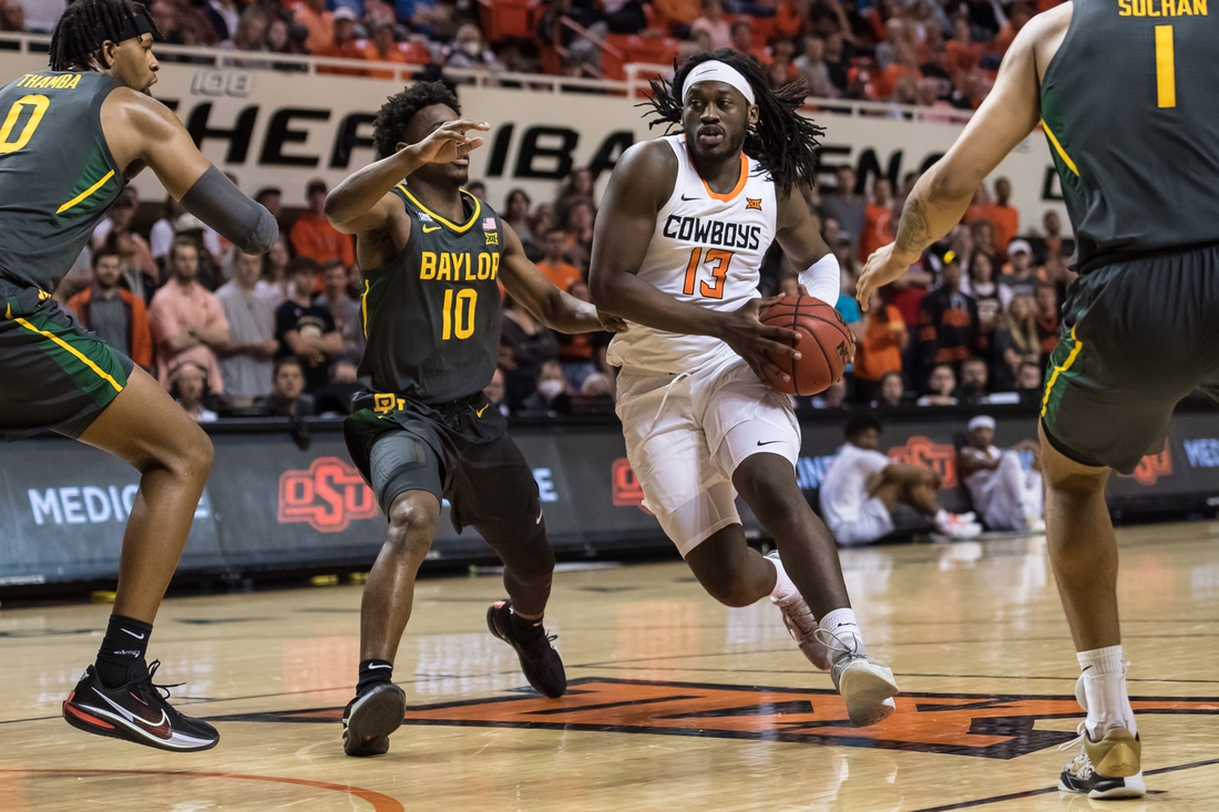 Adam Flagler’s 3-pointer with 1:13 remaining in regulation gave the Bears (23-5, 11-4 Big 12) a two-point lead, but Isaac Likekele responded with the tying layup for Oklahoma State with 42 seconds left. After a miss by Flagler, the Cowboys called a timeout to set up for a winning shot but could not get a good look, sending the game to overtime.