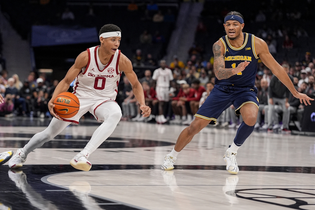 Jeremiah Fears converted a four-point play with 11.5 seconds remaining to lift No. 14 Oklahoma over No. 24 Michigan 87-86 at the Jumpman Invitational on Wednesday in Charlotte, N.C.