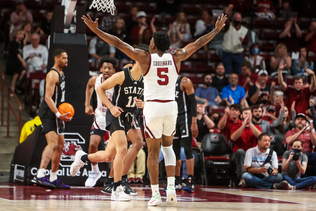Woodley’s spurt helped put the Gamecocks up 17-11. Later in the half, Bryant triggered a 9-2 run with a slam dunk. When Couisnard finished the run with a 3-pointer, South Carolina had a 31-19 lead.