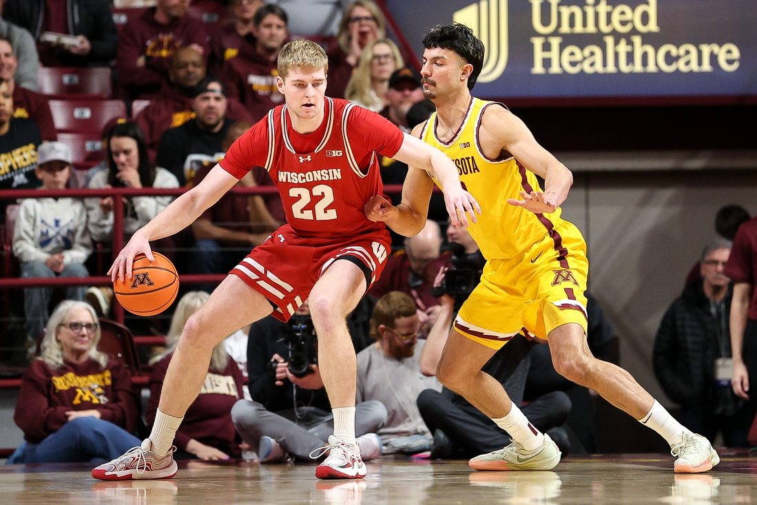 Wisconsin won the rebound battle 41-34. The Badgers made 21 of 24 free-throw attempts, and Minnesota made only eight of 15 from the line.