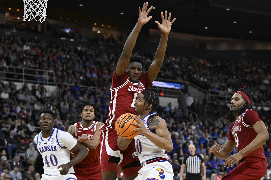 While the Razorbacks (21-13) advance to a second-round matchup on Saturday against second-seeded St. John’s, the Jayhawks (21-13) went one-and-done after starting the season as the No. 1 team in the country.