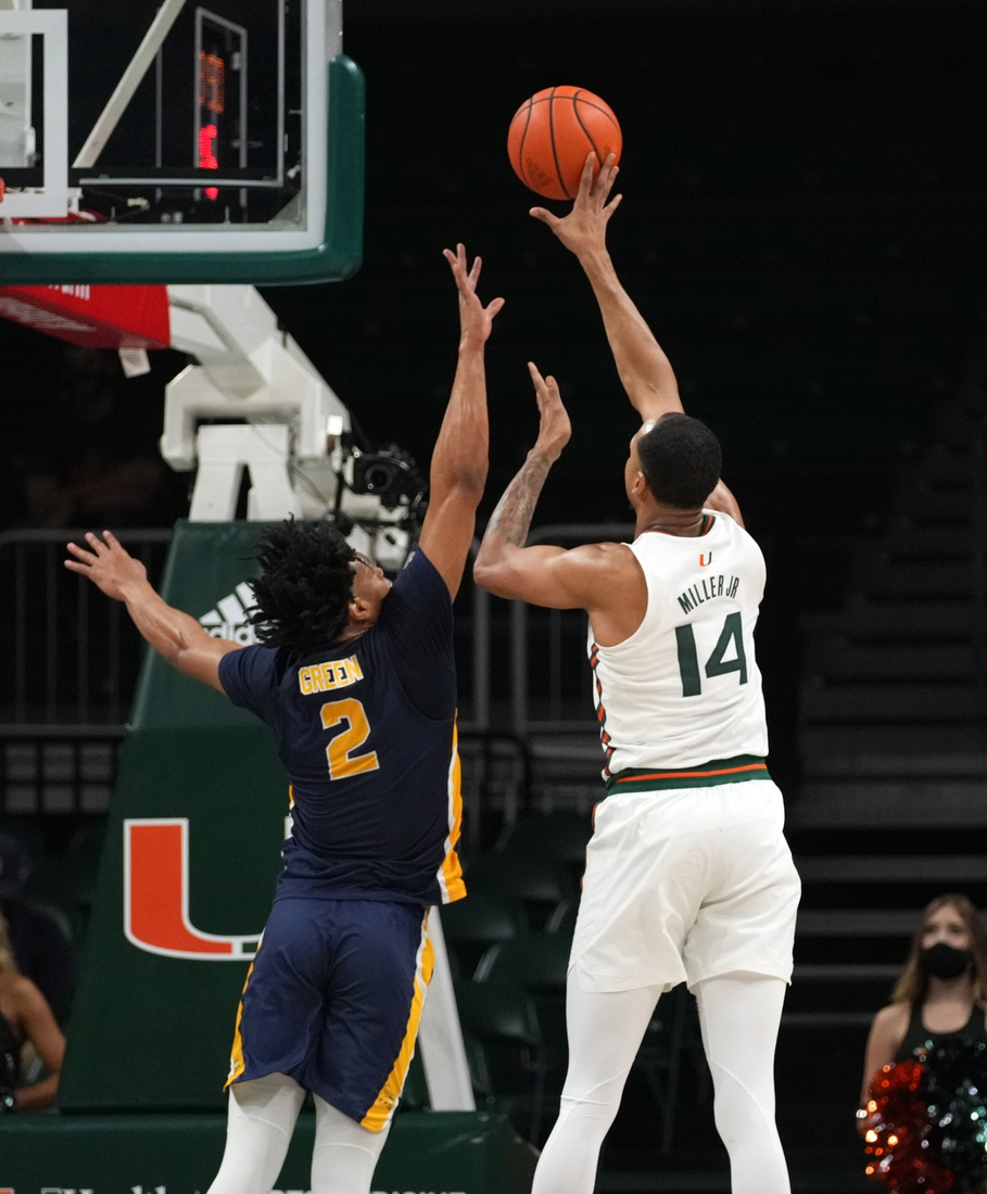 For the first half, Miami shot 53.1 percent from the floor, including 3-for-7 on 3-pointers. But the Hurricanes did not make a free throw (0-for-2).