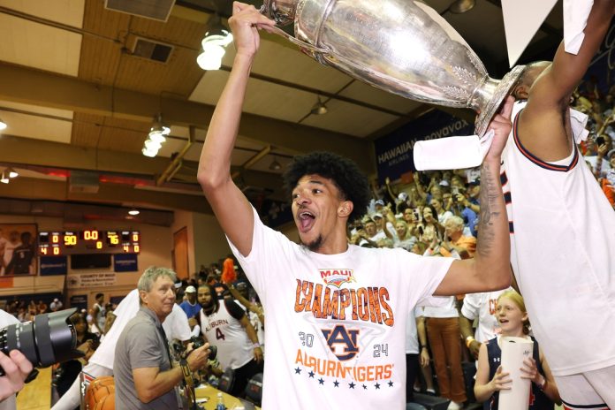 The Jayhawks (7-0) earned 35 first-place votes after defeating Duke while Auburn (7-0) snagged 26 after winning the title in Maui.